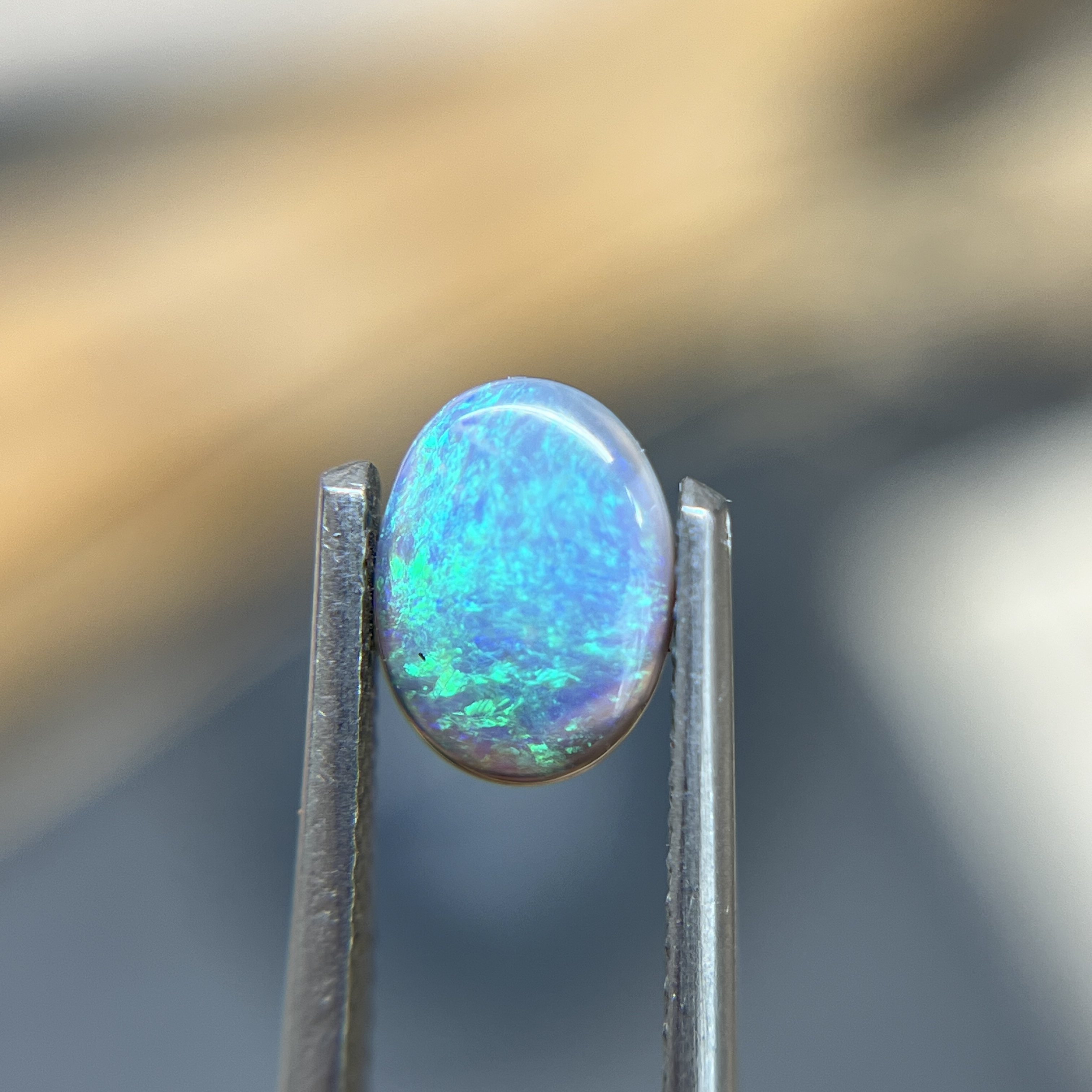 This captivating oval-cut black Australian opal shimmers with an ethereal play of color, revealing vivid flashes of emerald green, electric blue, and hints of violet with every turn. This opal makes an enchanting centerpiece for rings inspired by untamed landscapes or magical realms. Whether set in gold, platinum, or silver, this opal brings an otherworldly elegance that's both natural and mystical, making it ideal for a love story that's anything but ordinary.