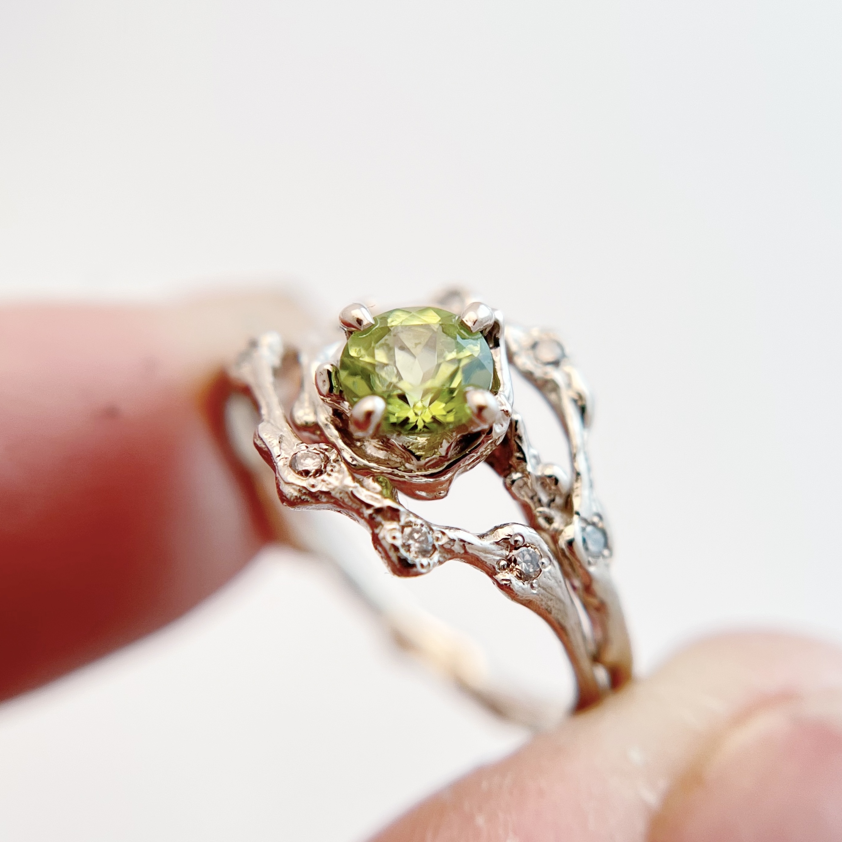 Custom Naples Arizona Peridot Half Halo, 14K white gold