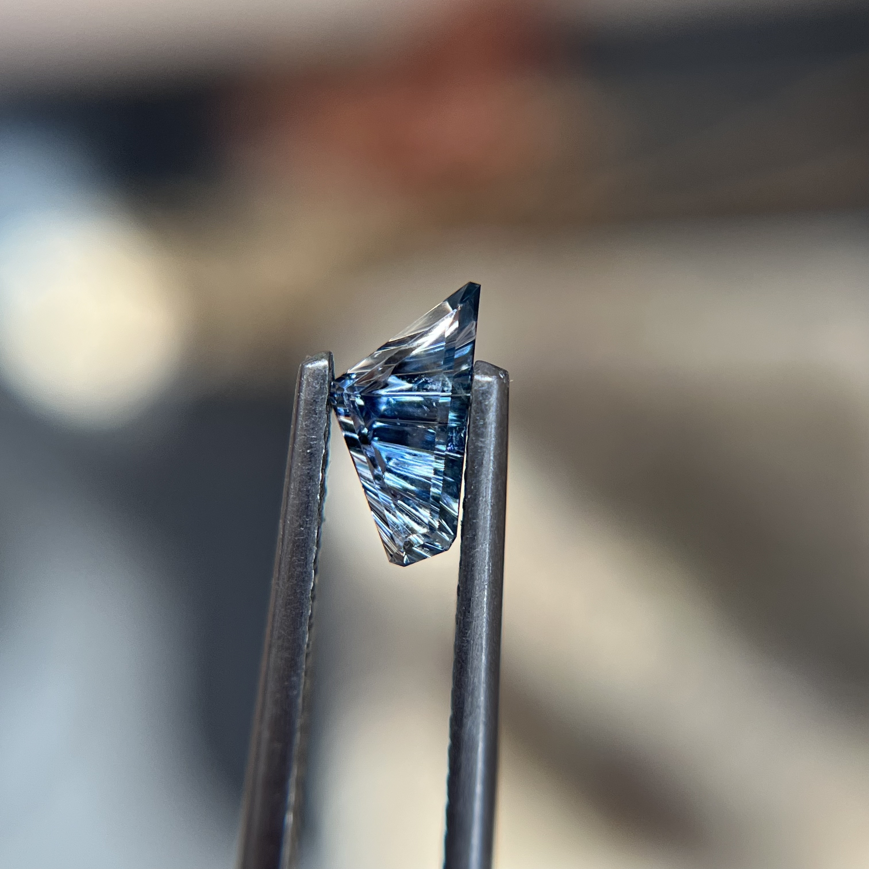 This enchanting cornflower blue sapphire gemstone captivates with its unique Freeform Dreamscape™ cut by John Dyer, a masterpiece that reflects light in waves of azure and twilight hues. Its organic shape, crafted with precision and artistry, creates a truly one-of-a-kind sparkle reminiscent of secret forest ponds and untamed wildflowers. Perfect for those seeking an ethereal and distinctive touch, this sapphire is a rare blend of nature's beauty and the elegance of artisanal craftsmanship, promising a timeless piece that feels like it belongs to an ancient, enchanted tale.