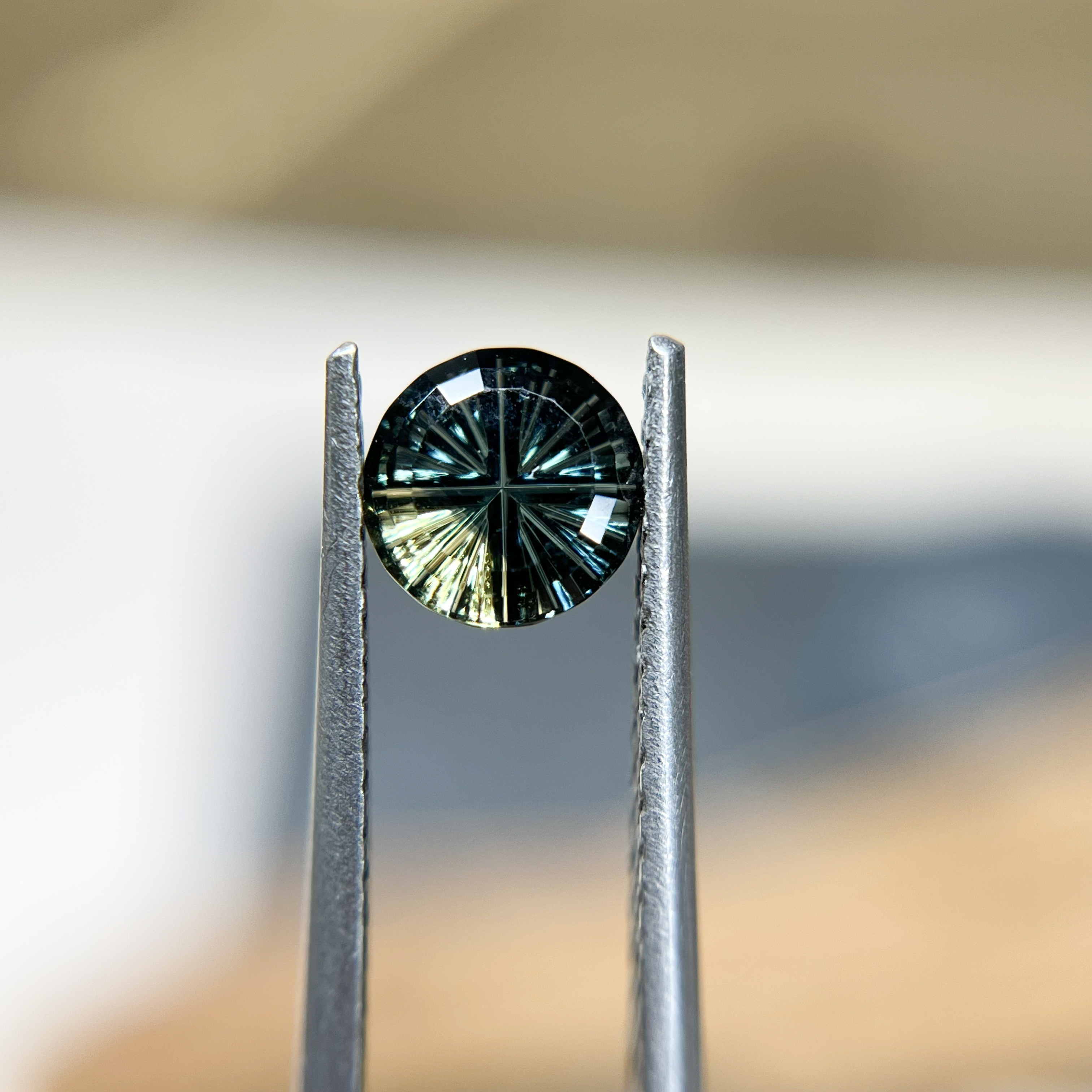 This parti color Australian sapphire shimmers with the colors of deep forest canopies and hidden mountain springs. Parti sapphires are prized for their natural bi-color patterns, and this gem’s blend of rich green and twilight blue makes it a rare and captivating choice.