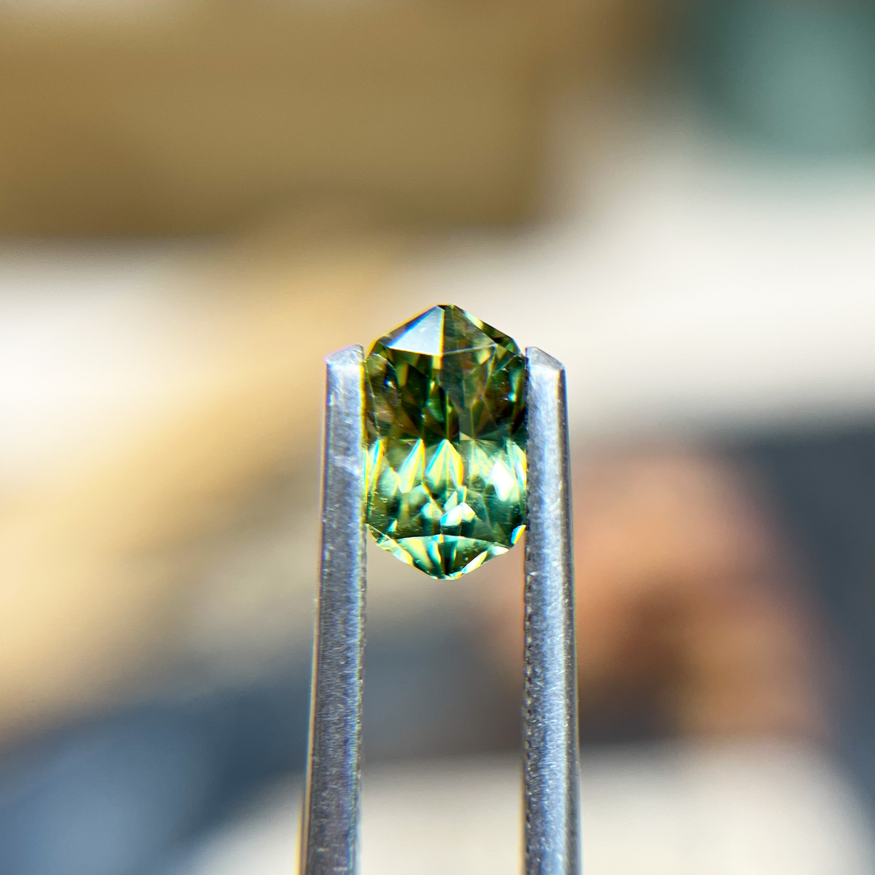 A striking testament to masterful artistry, this green elongated hexagon sapphire is cut in John Dyer’s exceptional Regal Radiant™ style, a shape that transforms light into a mesmerizing dance of brilliance. With crisp facets and an elongated silhouette, this one-of-a-kind sapphire is the perfect choice for a ring that feels both otherworldly and deeply connected to nature. John Dyer’s unparalleled craftsmanship ensures that no two stones are alike, making this sapphire a truly rare treasure.