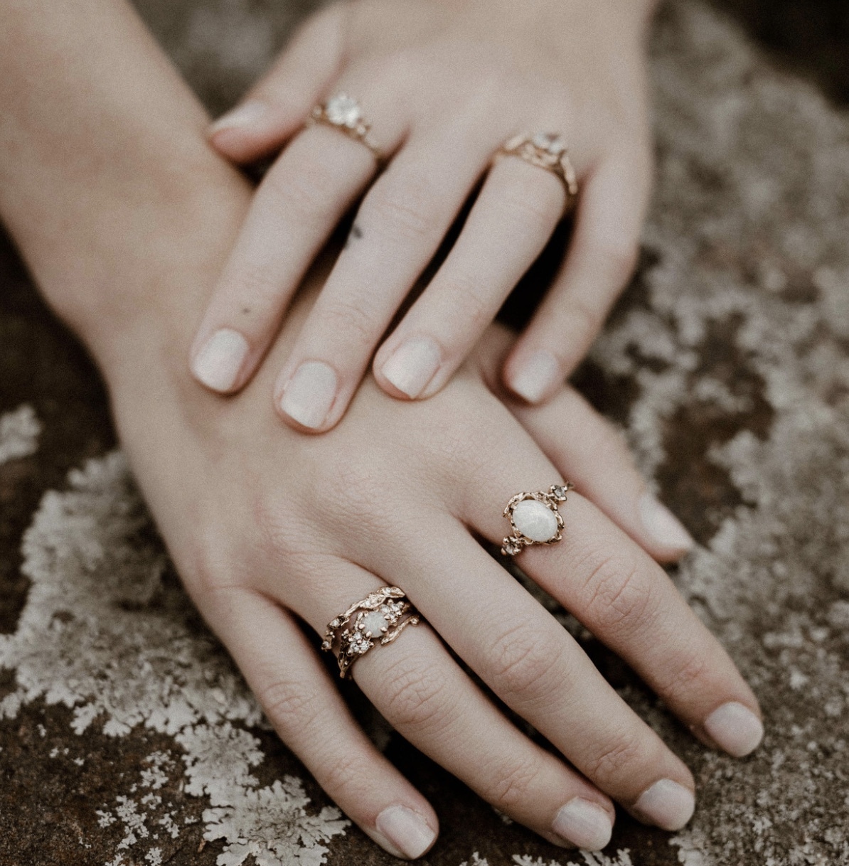 Why not create your own custom piece of ACOTAR-inspired jewelry? By combining enchanting elements–like the nature-inspired settings with twig bands and celestial gemstones such as sapphires, moonstones, and grey diamonds, you capture the magic of Prythain in a piece that is uniquely yours. At Olivia Ewing Jewelry, you can choose a unique piece of our fantasy collection or we can help bring your vision to life by crafting a piece that is as magical and unforgettable as your own story. Explore our custom design options and start your adventure into the world of ACOTAR jewelry now.
