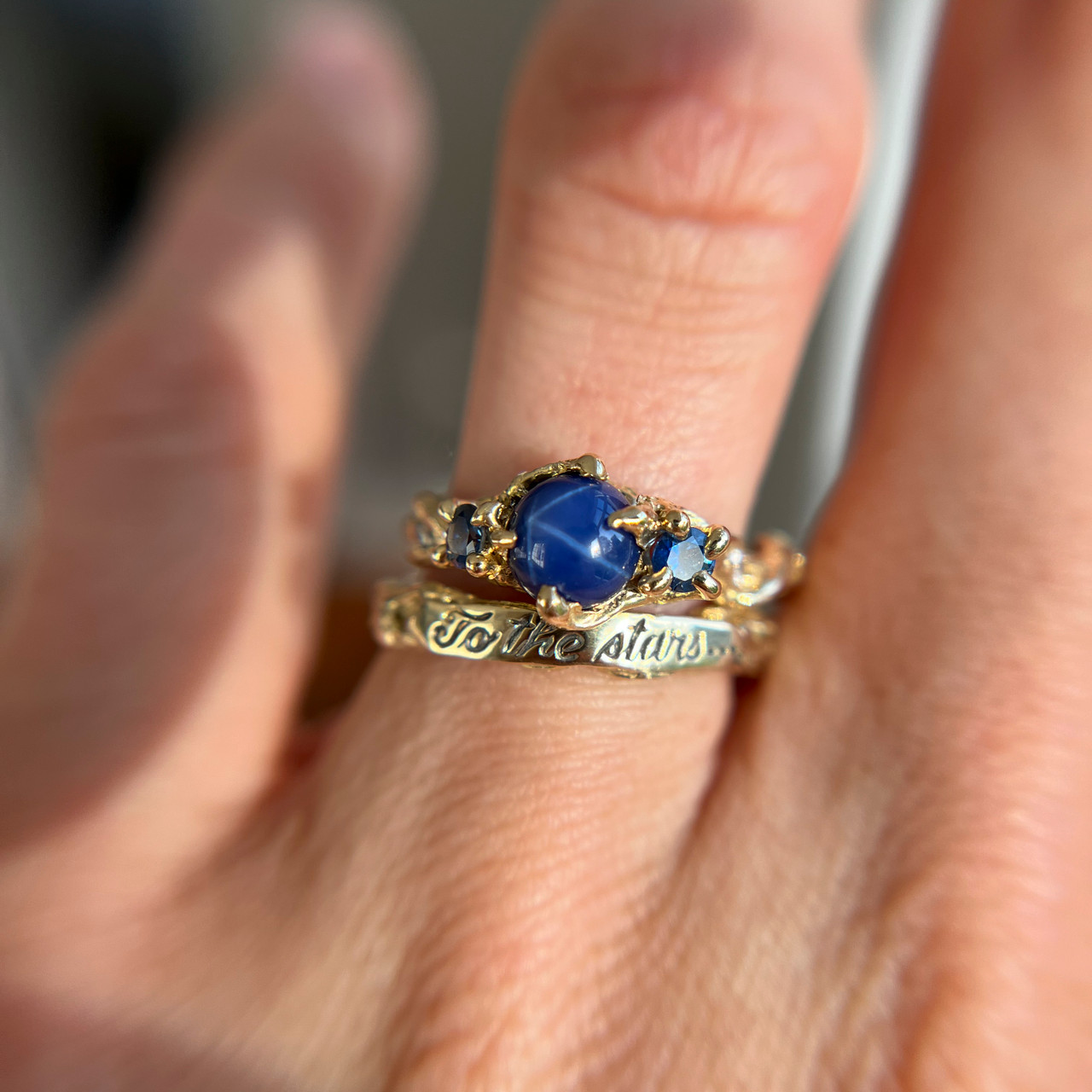 The Woodland Star Sapphire Three Stone Ring - For the Woman Who Was Never Meant to Go Unnoticed