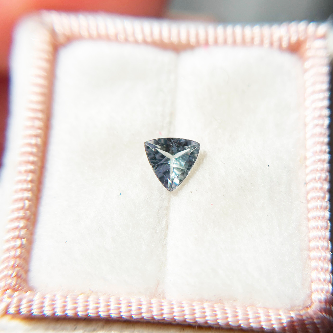 Our Trillion Light Grey Blue Montana Sapphire is a stunning representation of Arwen's deep and mysterious nature. This 0.42-carat Montana sapphire maintains a captivating blue-grey hue that exquisitely reflects light. The trillion cuts of the sapphire allow for a maximum amount of light to pass through, ensuring the stone's brilliance at any angle or under any lighting conditions. And like Arwen, this uniquely shaded sapphire hints at a deeper and more mysterious nature.