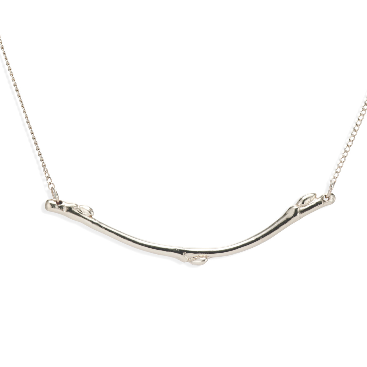 The Silver Sapling Necklace is a perfect homage to the natural beauty of the Tolkien world that Arwen inhabited. A solid sterling silver twig hangs delicately on a curb chain that hangs 7 1/2 inches. The horizontal twig is 2 1/2" long and features all of the original sprigs' natural budded detail in sterling silver complexity. If you want to bring out the heroine in your own life, or if you want to create a new fantasy world with someone else's hero at its center, this Silver Sapling Necklace is for you.