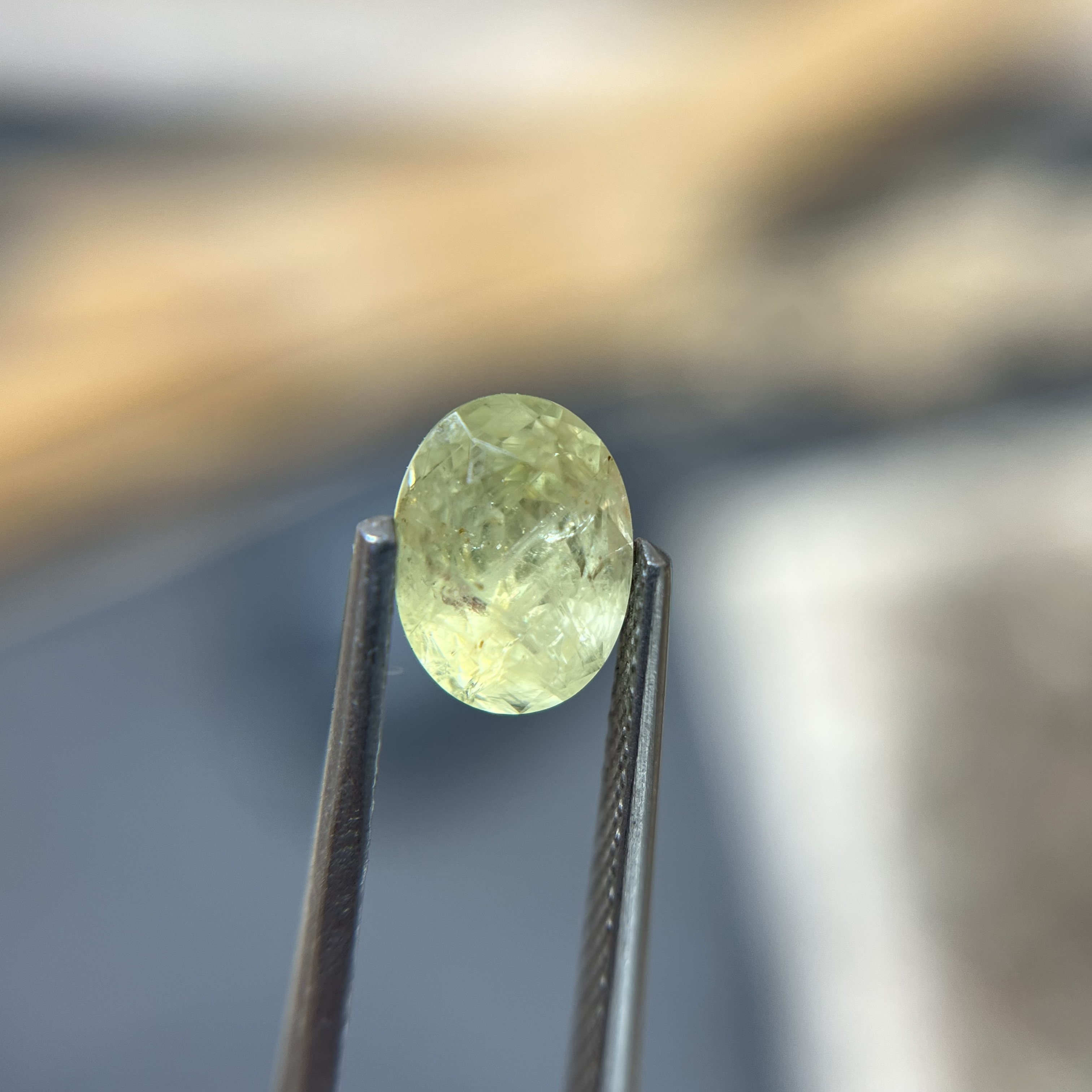 This light yellow-green oval Montana sapphire shimmers gently between the warmth of early morning sunlight and the soft greens of a forest clearing. Mined from the rugged landscapes of Montana, this sapphire is a rare gem known for its exceptional clarity and natural beauty. Its earthy elegance makes it a stunning choice for those drawn to romantic, nature-inspired designs or whimsical, fairy-tale aesthetics. Whether set in gold, silver, or platinum, this stone carries an enchanting presence that feels both grounded and magical.