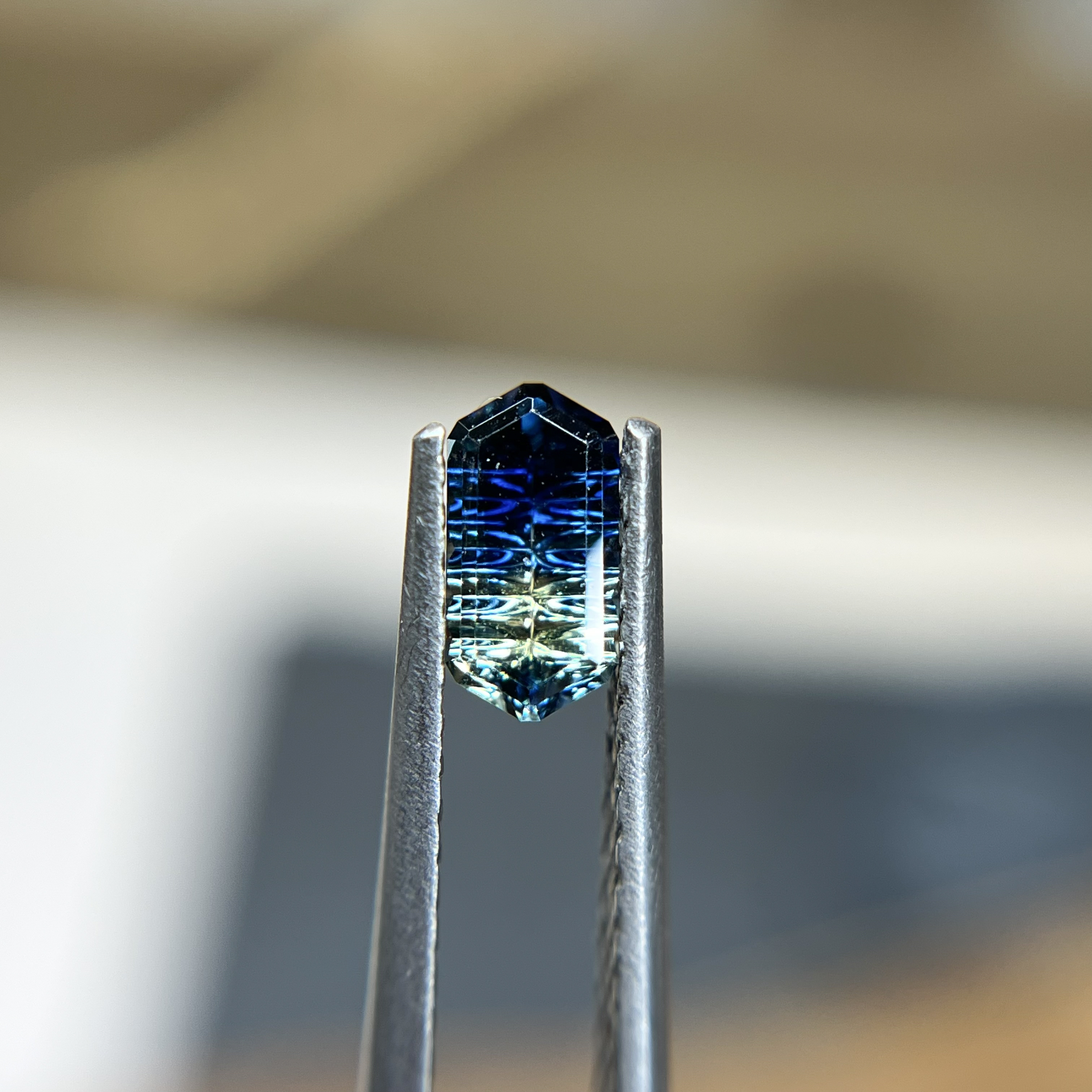 This Ocean Blue Parti Color Australian Sapphire shimmers with layered tones of inky blue and hints of forest green — like moonlight filtering through ancient trees. With its depth and magic, it’s the kind of stone that feels destined for a ring rooted in nature, myth, and timeless wonder.