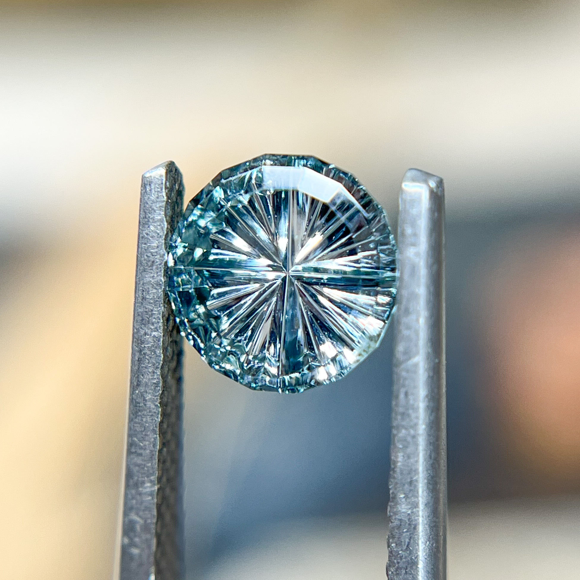 A mesmerizing ocean blue montana sapphire, expertly shaped by award-winning gem cutter John Dyer, whose artistry brings out an extraordinary brilliance. The rare Starbrite™ cut, with its intricate pattern of light and shadow, creates an otherworldly sparkle—an enchanting choice for those seeking a ring that feels both ethereal and deeply personal. With its one-of-a-kind faceting and captivating hue, this gem is a treasure unlike any other.