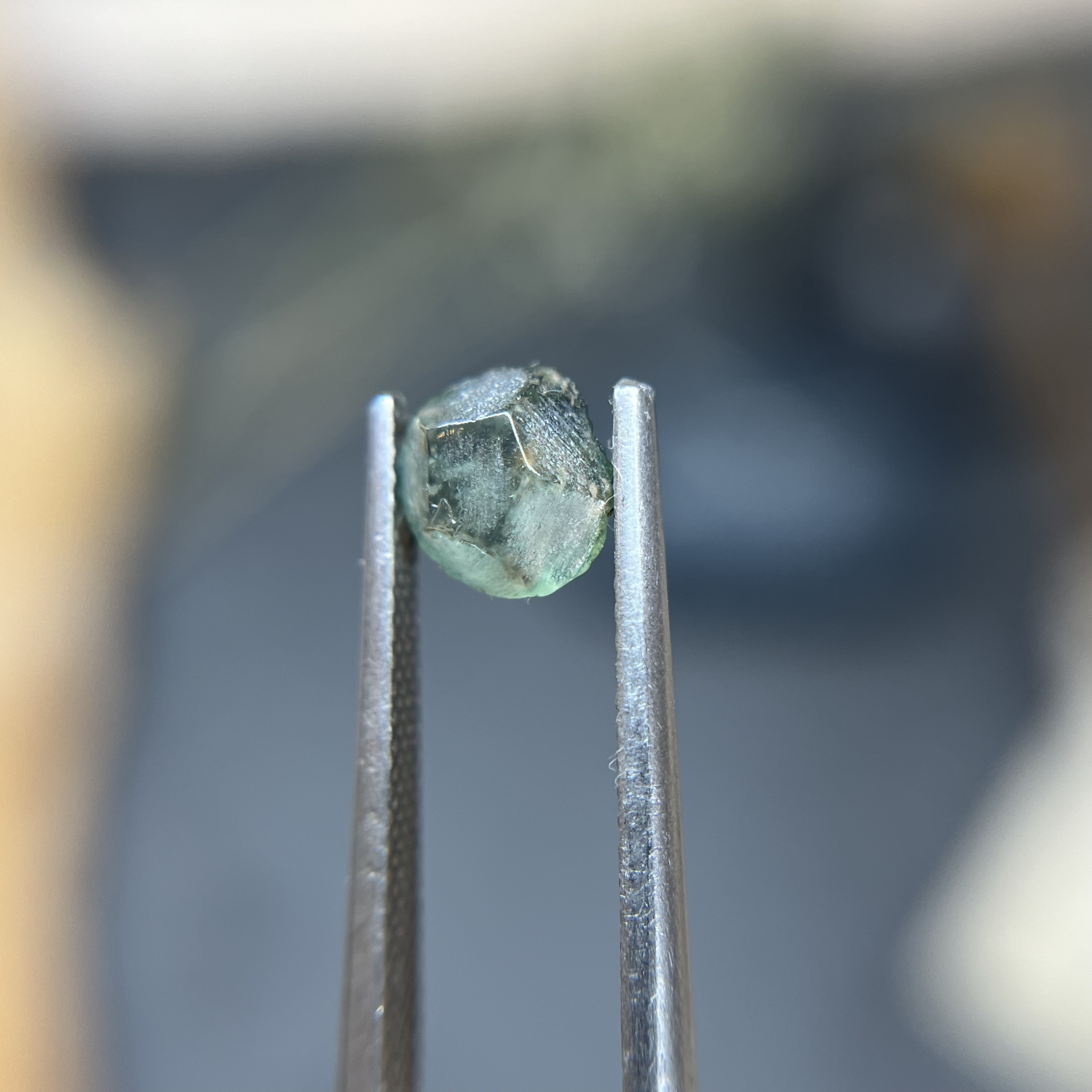 This hand-faceted, light teal blue Montana sapphire captures the enchanting essence of a mystical forest. Each facet follows the natural contours of the rough stone, resulting in a unique and breathtaking gem. Ideal for a fantasy-inspired engagement ring or a design celebrating nature’s beauty, this sapphire is a gem fit for a fairy queen.