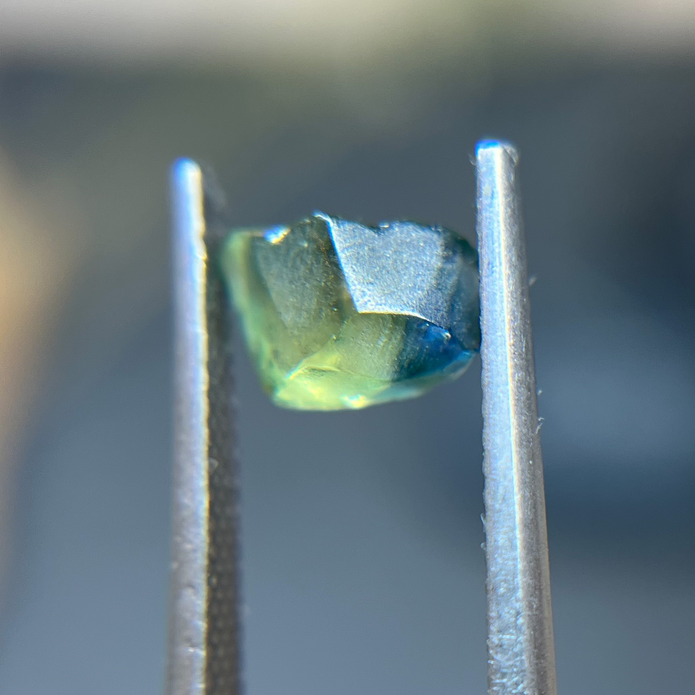 This exquisite Organically Faceted Parti Color Blue Teal Australian sapphire is a perfect choice for those seeking an engagement ring with a touch of fantasy or a connection to nature. Hand-faceted to follow the natural contours of the rough stone, its unique blend of blue and light teal hues captures the essence of a woodland fairy tale. This one-of-a-kind gem will add an enchanting and whimsical charm to any setting, making it an unforgettable centerpiece.