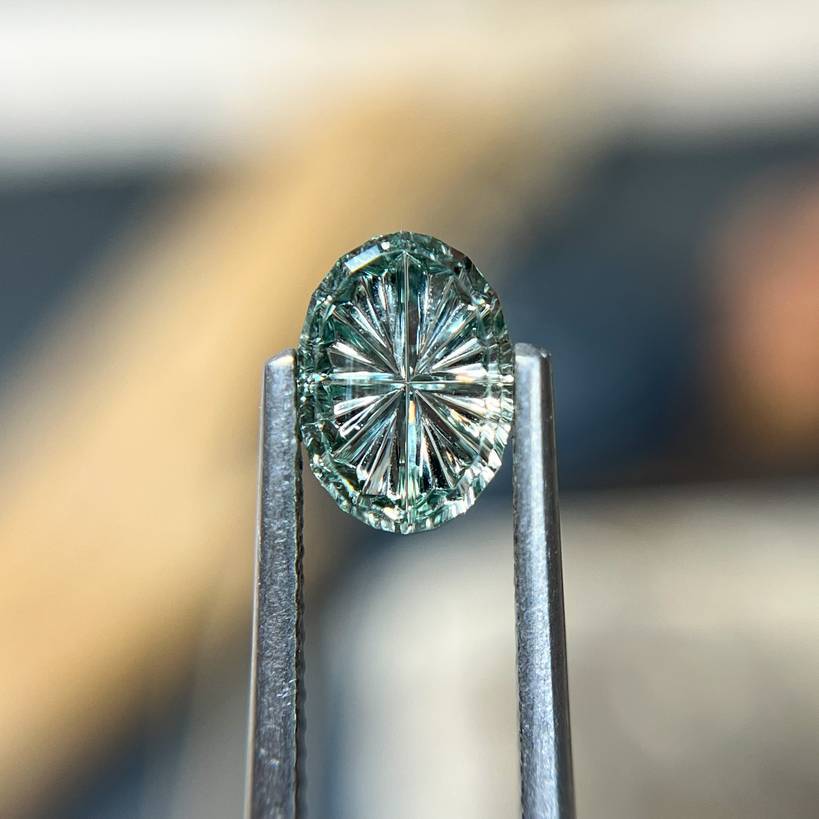 This Blue Green Sapphire, masterfully shaped in John Dyer's Oval Starbrite™ cut, captures the essence of untamed beauty and reflects a play of deep, shifting blues and greens, evoking hidden lakes under starlit skies.Its exceptional craftsmanship, courtesy of John Dyer's precision cuts, ensures a brilliance that transcends the ordinary. Perfect for someone drawn to artistry and raw elegance, this sapphire offers a fresh, imaginative twist that feels both modern and timeless, lending an effortless enchantment to any heirloom setting.