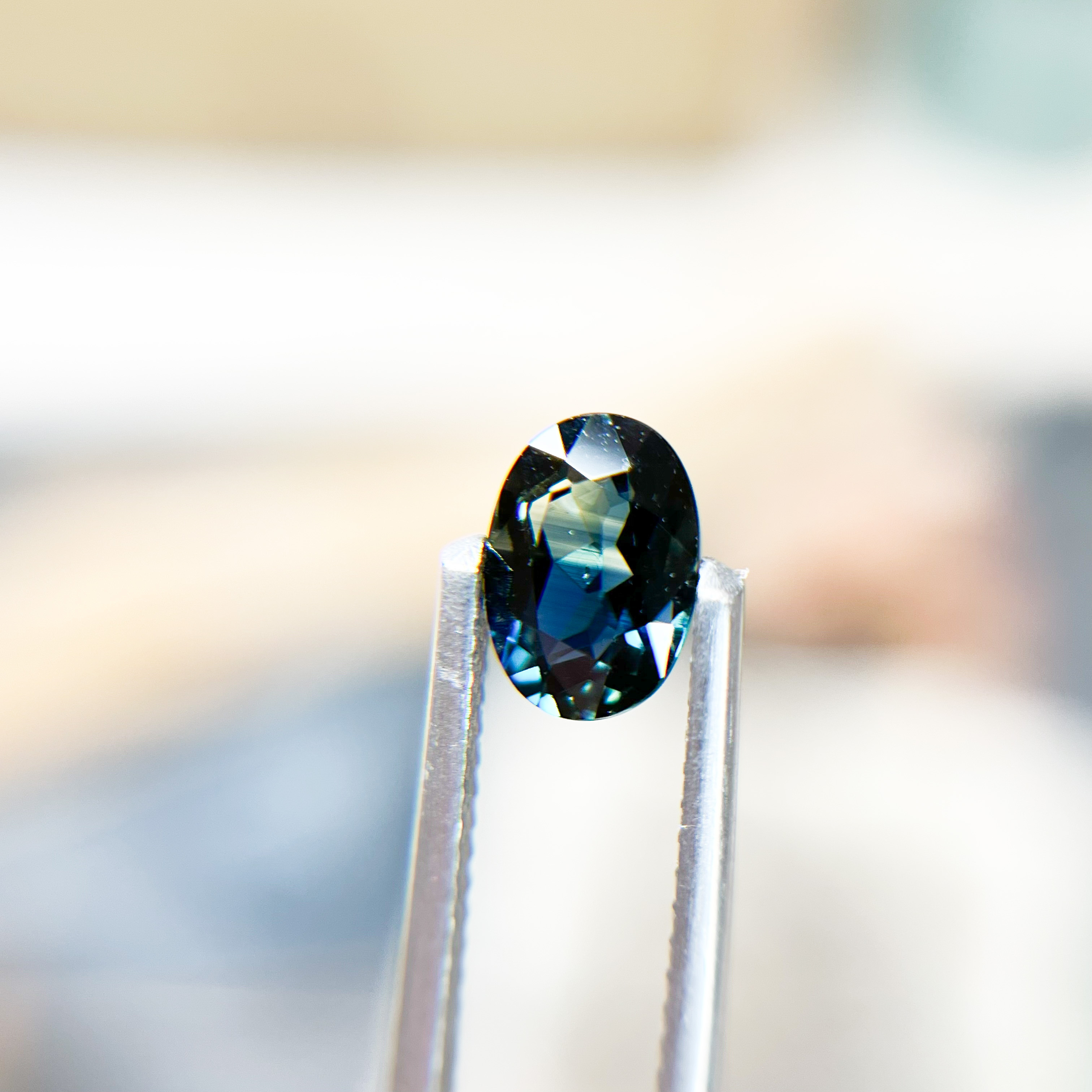 A rare treasure from Australia, this oval sapphire captivates with its striking color-blocked hues of deep blue and vivid teal. Each shift of light reveals a new dimension, making it a mesmerizing choice for those who seek something truly one-of-a-kind. Australian sapphires are celebrated for their rich, untamed beauty, and this parti-colored gem is no exception—an enchanting addition to a setting inspired by nature and myth alike.