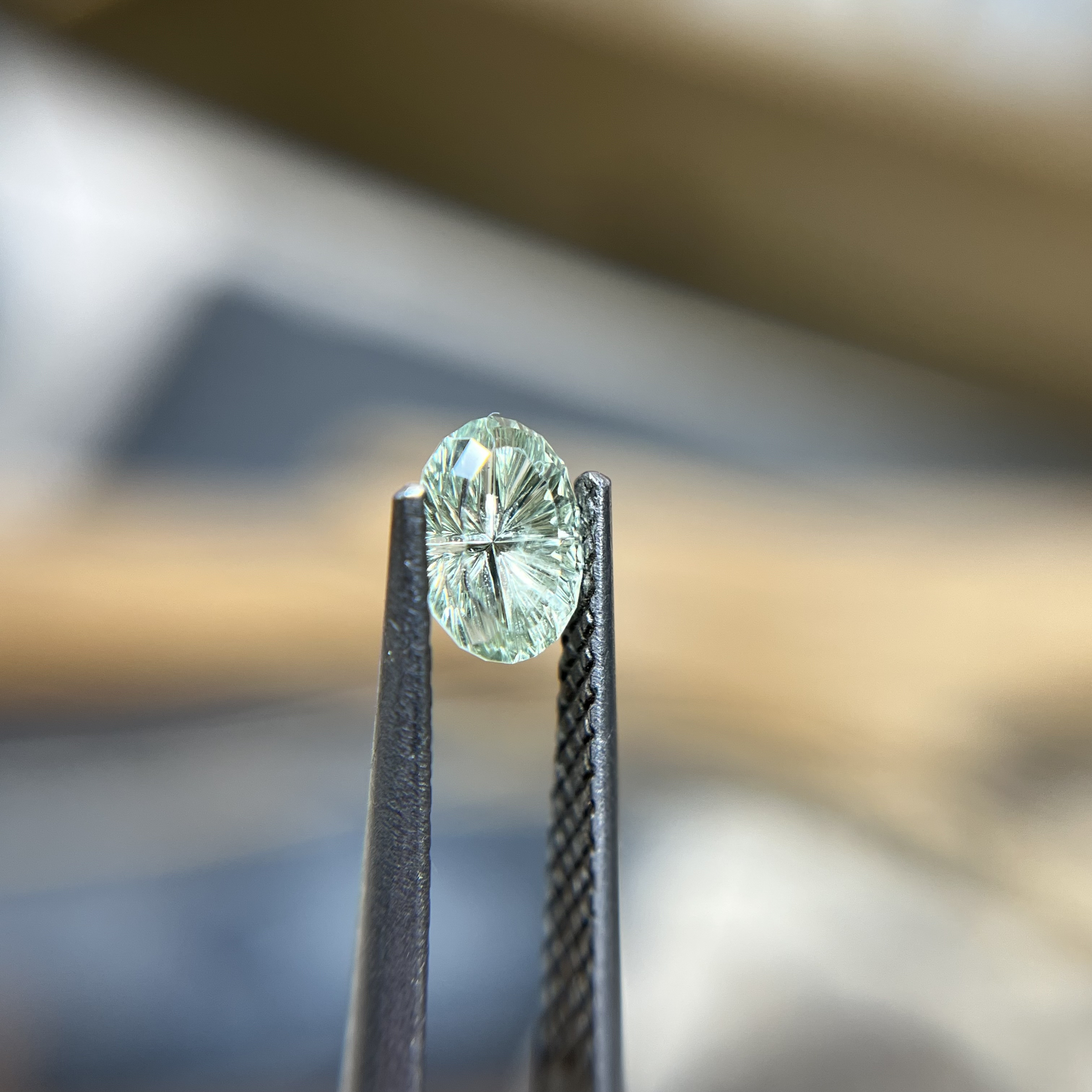 This oval Montana sapphire captures the soft glow of wild meadows and ancient forests. Ethically sourced from the rugged landscapes of Montana, its delicate hue and exceptional brilliance make it a rare and meaningful centerpiece for a ring that feels both enchanted and timeless.