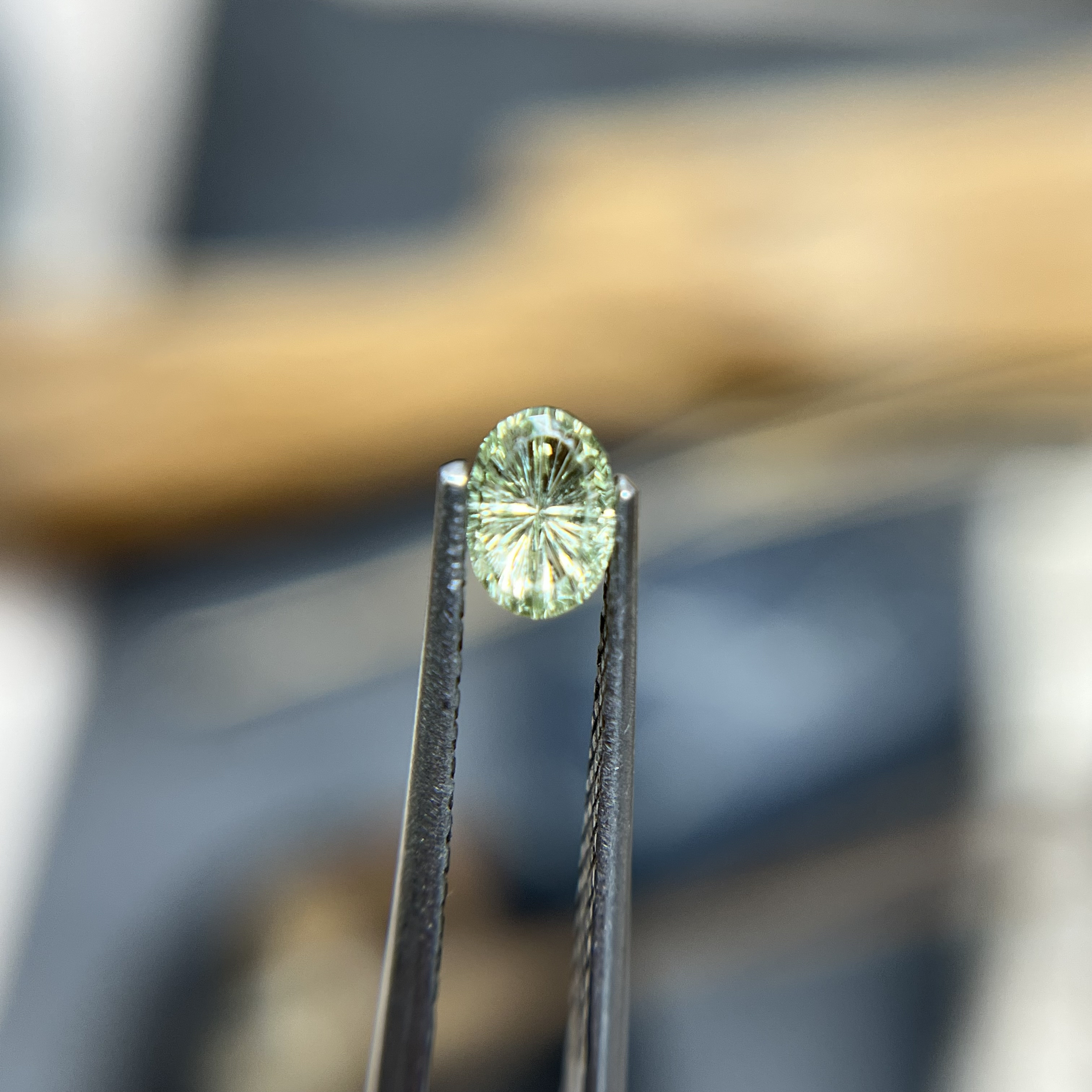 This oval Montana sapphire glows with a soft, golden light reminiscent of morning dew catching the sun. Ethically mined in Montana, its delicate hue and radiant brilliance make it a rare and meaningful choice — especially for those drawn to organic elegance or romantic, otherworldly design.