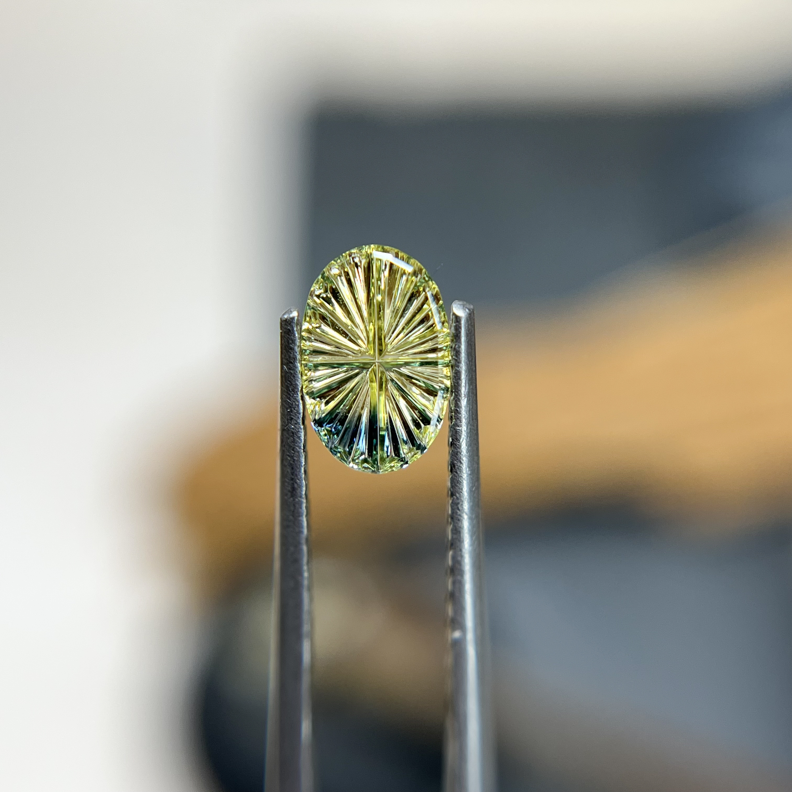 This captivating Parti Color Sapphire shimmers with ethereal hues of light teal and lime, shifting beautifully with the light like sun-dappled forest leaves. It radiates a brilliance that feels both otherworldly and deeply grounded in nature. Sapphires have long been cherished for their durability and rarity, but it's this gem’s magical color play and artisan cut that make it truly unforgettable.