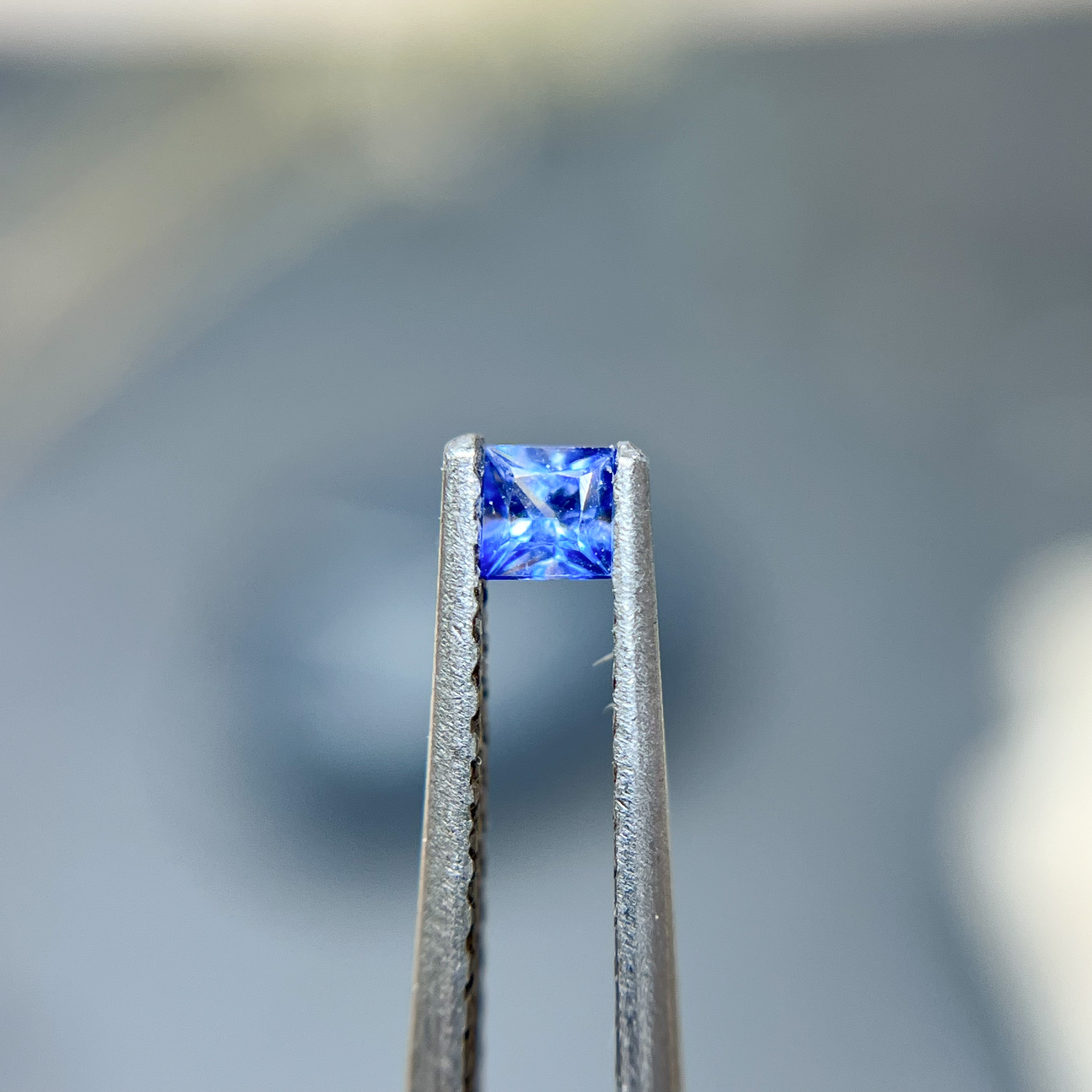 This exquisite small princess cut blue ceylon sapphire is an ideal choice for a petite engagement ring or as a unique accent stone to complement a larger setting. Its enchanting blue hue, reminiscent of serene forest lakes and mystical fairy tales, makes it perfect for a ring inspired by fantasy or nature. This stone, part of our mini stone collection, captures the ethereal beauty suited for those with an affinity for woodland elegance.