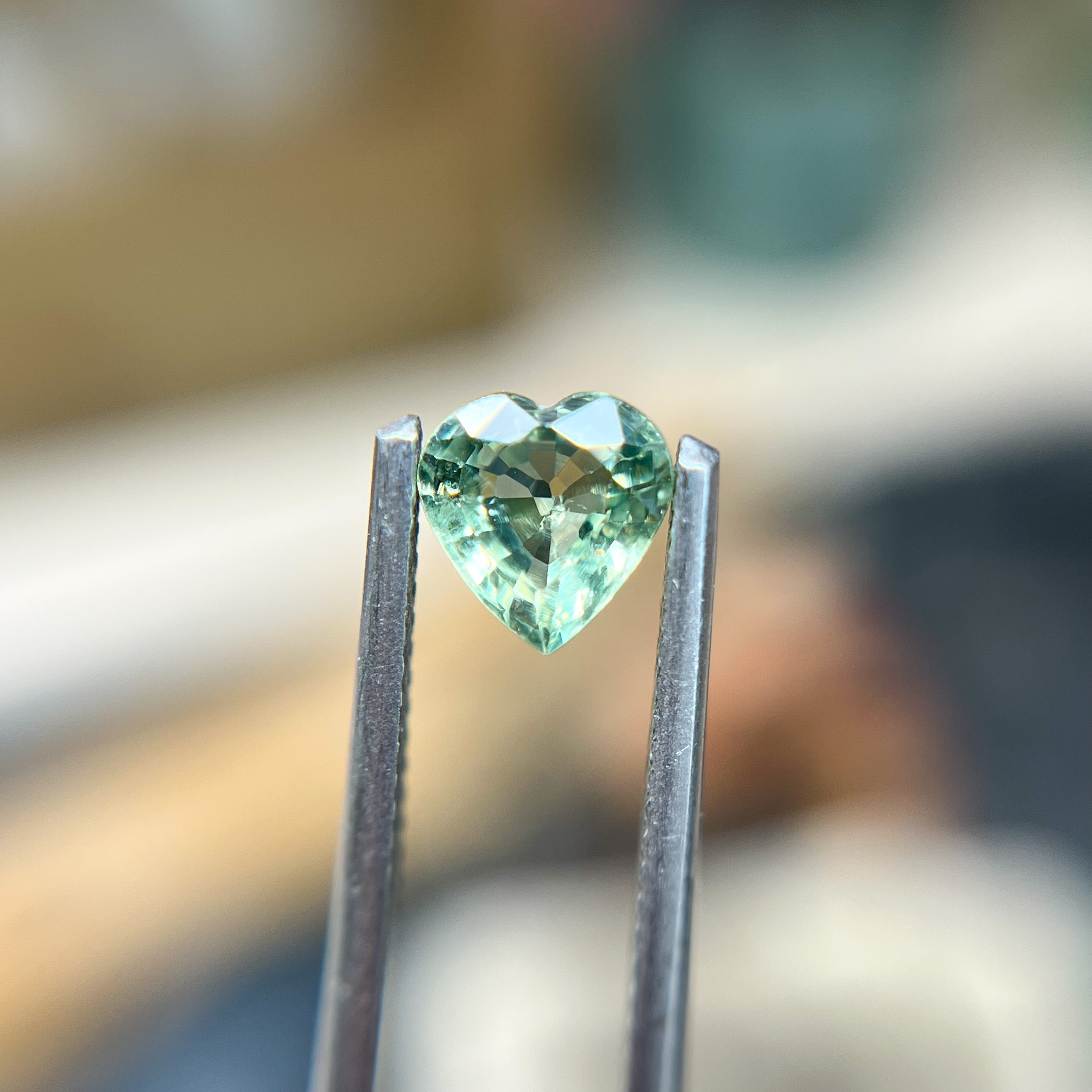 This reclaimed heart-shaped green sapphire shimmers with an untamed beauty, its verdant depths echoing ancient forests and whispered legends. A symbol of love and resilience, its unique hue and ethically sourced origins make it a striking choice for those drawn to nature’s quiet magic and timeless romance.