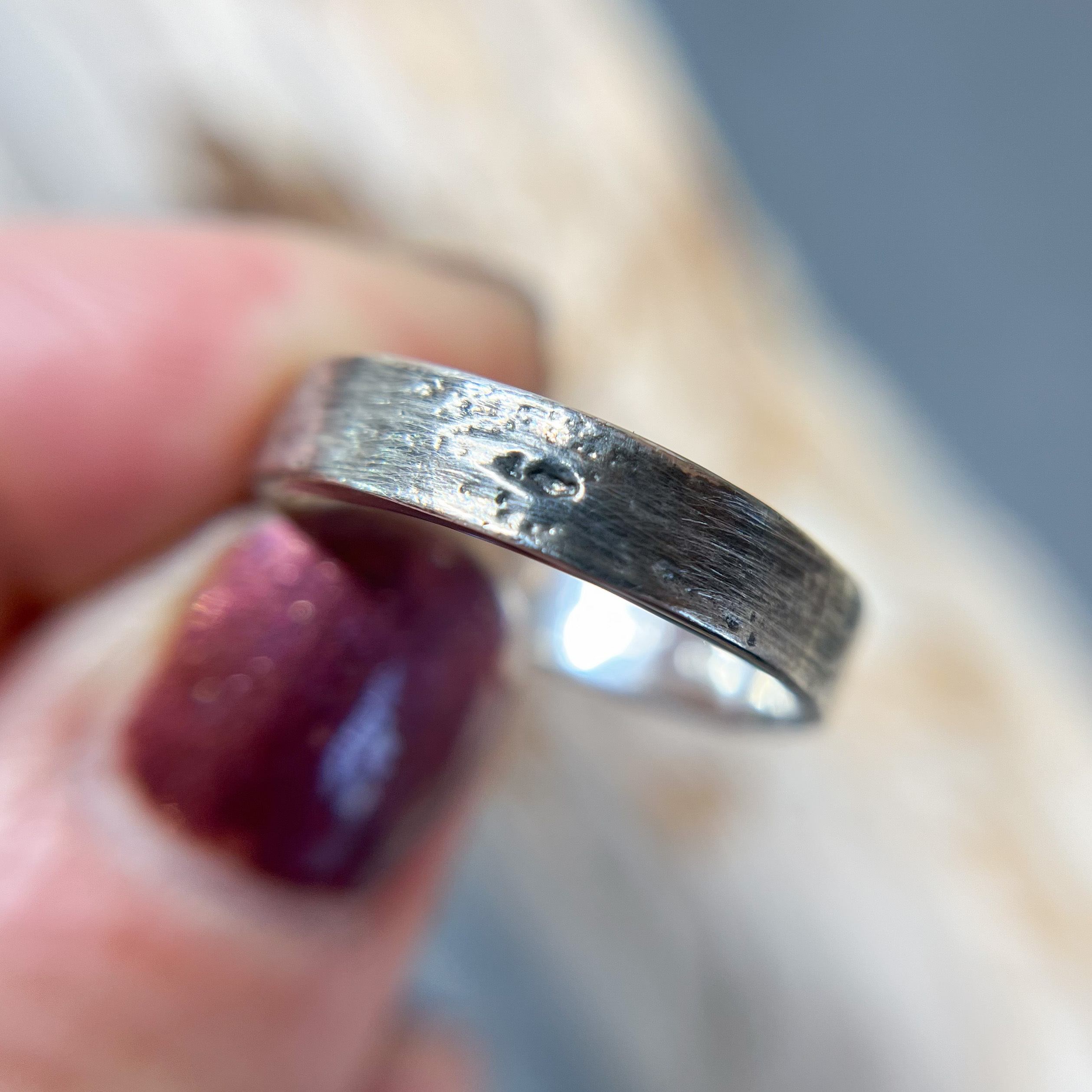 Cast from real birch bark the solid sterling silver Birch Ring is lightly oxidized to showcase the elegance of the delicate, natural details. The classically squared shape of the 5mm band is a timeless masculine shape polished smooth within for unrivaled comfort.