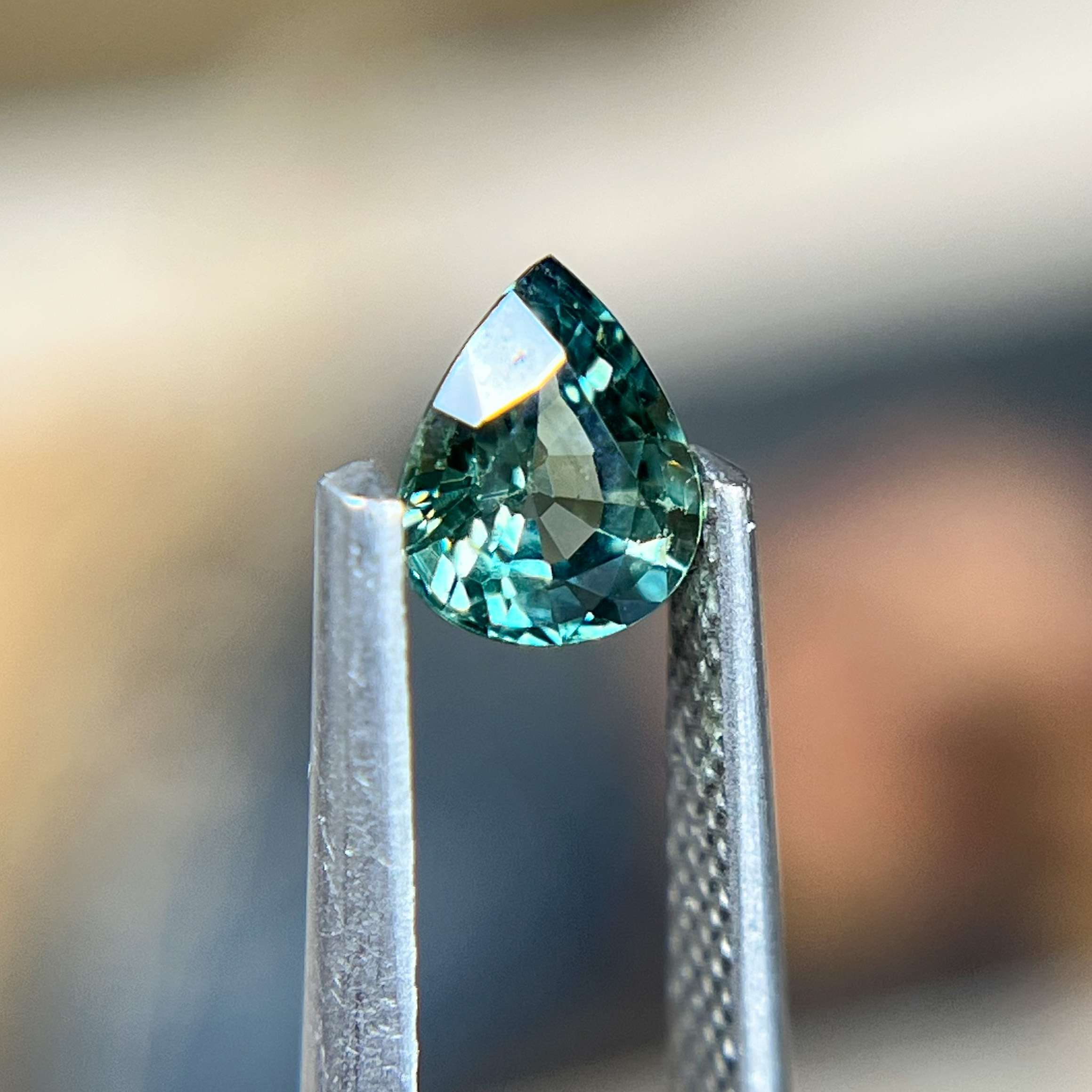 This teal blue parti-color sapphire, shaped into a graceful pear cut, shimmers with a mesmerizing dance of deep blue and verdant green—an echo of twilight meeting an enchanted forest. Sourced from Montana, each sapphire is a rare marvel, uniquely kissed by nature’s artistry. A treasure unlike any other, it’s destined to crown a ring that feels both mythical and deeply personal.
