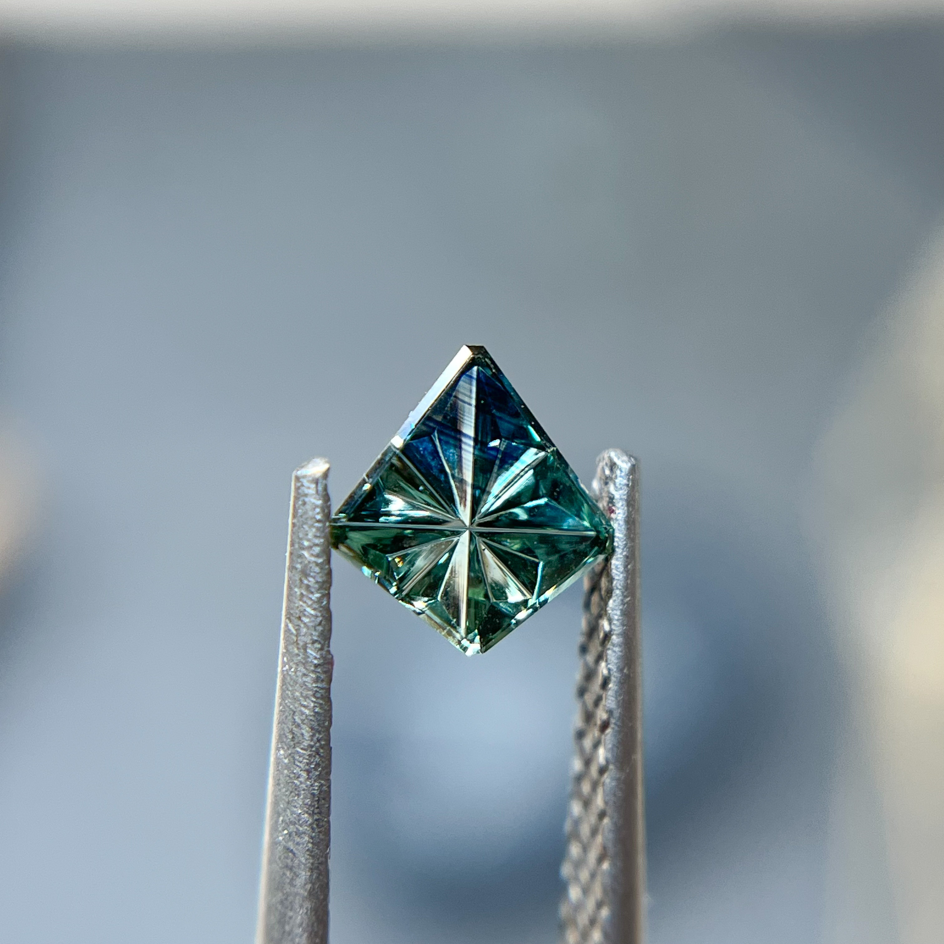 This exquisite teal parti color kite sapphire, masterfully cut by John Dyer in the unique Dreamscape freeform style, is an enchanting gem that will elevate any engagement ring into a piece of true artistry. The Starbrite™ cut enhances the sapphire's natural play of colors, creating a mesmerizing interplay of light and shadow. Its rare, ethereal beauty makes it a perfect choice for a ring that whispers tales of mystique and wonder, capturing the magic of both nature and fantasy.