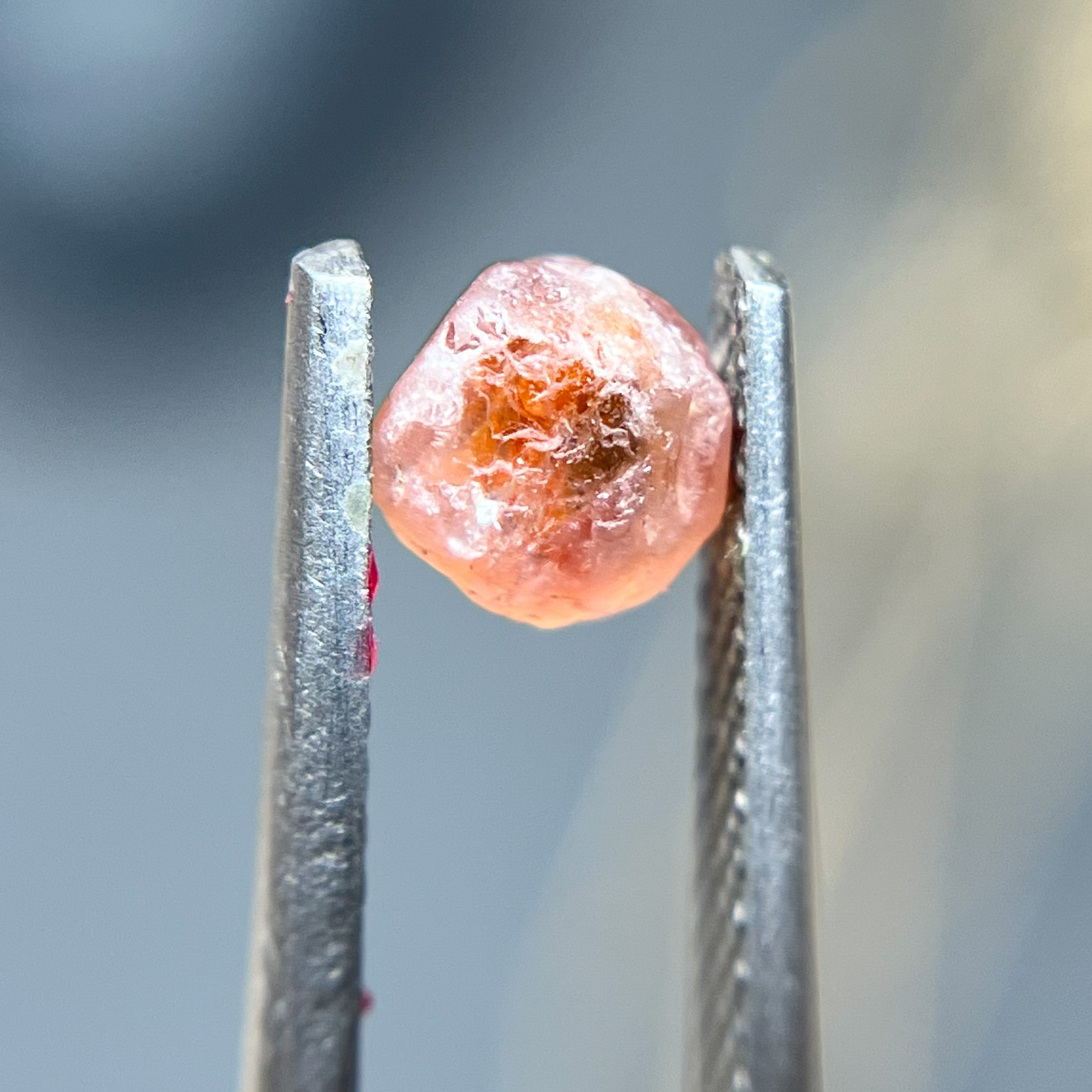 This uncut dark peachy pink Montana sapphire loose gemstone captures the untamed elegance of nature, its raw form echoing the beauty found in untouched wilderness. Its deep, blush hue holds a mysterious allure, making it a captivating centerpiece for those seeking something as unique and enchanting as the stories woven by ancient forests and hidden realms.